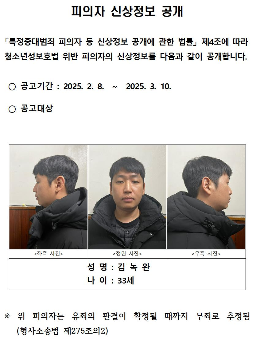 - 김녹완의 신상공개 결정