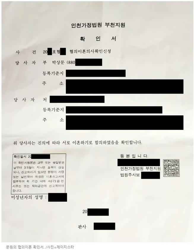 협의이혼이었으며, 이혼 사건 기록조차 존재하지 않음.