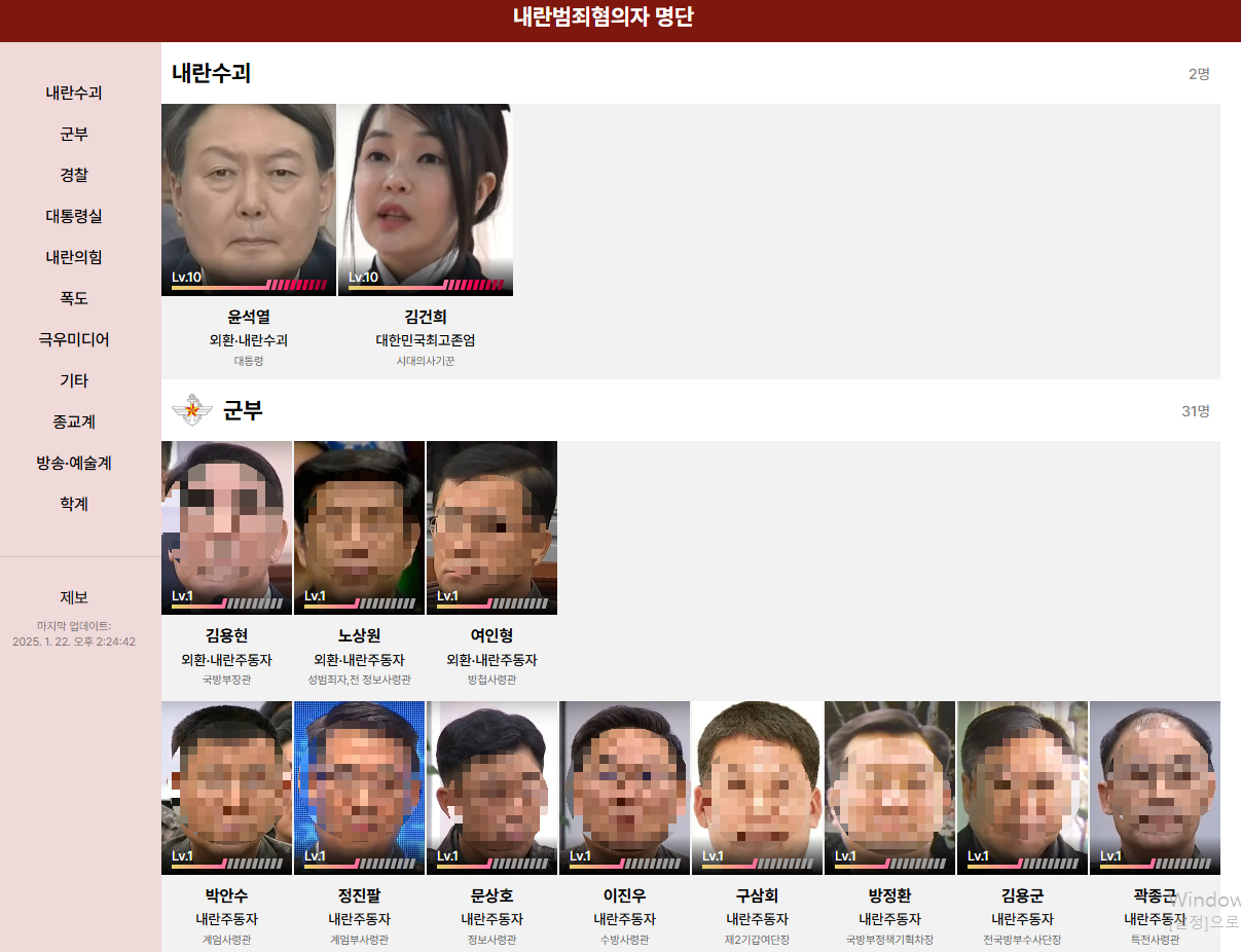 | 서부지법 난동사건 관련 53명 신상공개 사이트 크리미널윤 내란범죄혐의자명단공개 레벨등급 (0) | 2025.01.23 |