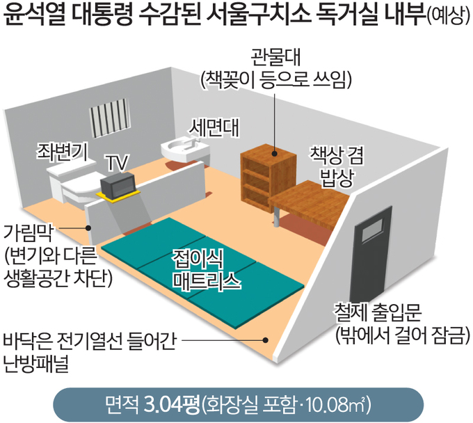 윤석열 대통령은 서울구치소의 독거실에