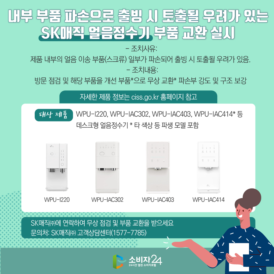한국소비자원은 SK매직 얼음정수기 일부 제품에서