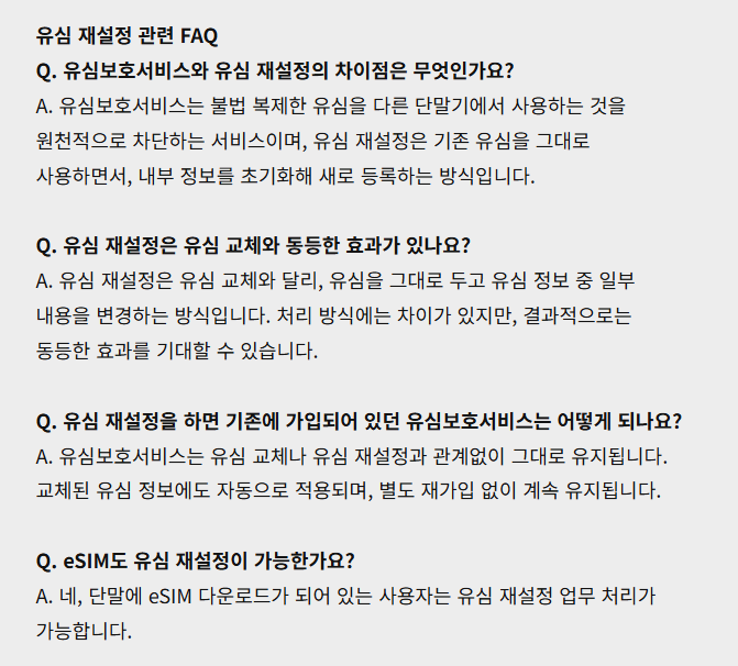 재설정 완료 후, 유심 교체 없이 바로 사용 가능 (앱/데이터 유지)